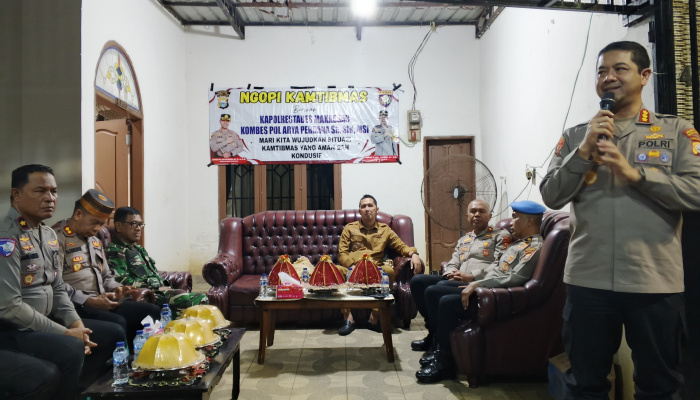 Pilarrakyat.Com-Makassar-Kapolrestabes Makassar, Kombes Pol Arya Perdana, SH., S.I.K., M.Si, menggelar kegiatan Ngopi Kamtibmas di kediaman H. Nasar, Jalan Macini Gusung RW 02/RT 06, Kelurahan Macini Gusung, Kecamatan Makassar, Kota Makassar, Sulawesi Selatan, Rabu (17/09/2025) malam pukul 20.00 WITA.